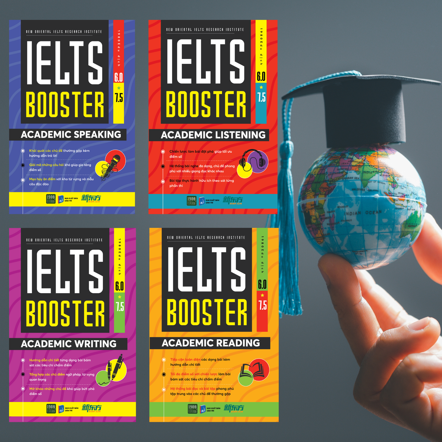 Sách - Combo 4 Cuốn IELTS BOOSTER ACADEMIC – Tự Học IELTS 4 Kỹ Năng Từ 0 Đến 7.5+